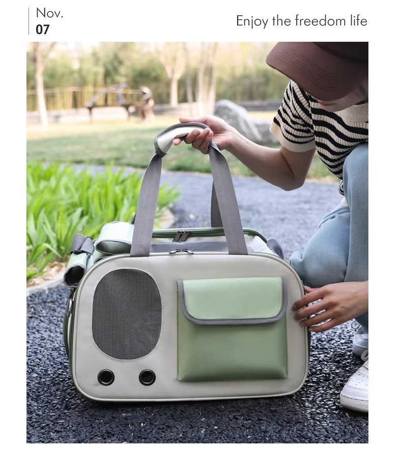 This pet carrier bag is made of durable PVC, yet lightweight and easy to carry. Its unique and novel triangular design and 40cm x 26cm x 26cm dimensions are perfect for small pets, making it a practical choice for outings with cats and dogs. The crossbody design allows for hands-free carrying, making travel more comfortable. The simple, solid color pattern complements any outdoor setting.